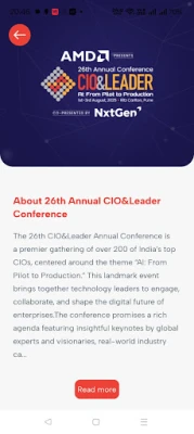 Welcome to the official app for the 26th Annual CIO&Leader Conference presented by AMD and co-hosted by NxtGen, happening from 1st–3rd August, 2025 at the Ritz Carlton, Pune. This powerful companion app is your one-stop solution for navigating the premier event for IT leaders and decision-makers.