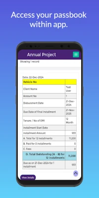 The Annual Project Manager is built to accommodate both new and existing users. New users can register effortlessly within the app, while those already registered can log in to access their digital passbook, which offers a comprehensive view of their transactions and payment history.
