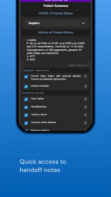 Streamline patient care, clinical progress, and team communication with this EHR-embedded application that synchronizes information from mobile to desktop. Rich, actionable EHR information is visually presented in a format unique to each specialty's priorities. Clinical teams caring for a patient have what they need, when they need it, to organize rounds, convey discharge readiness, and conduct hand offs. As status and situations change, smart notifications and secure messaging ensures the right information is provided to act.