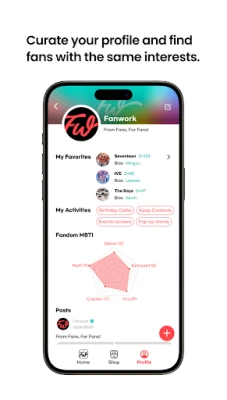 • Global Fan Connections: Connect with K-pop fans from around the world. Whether you're planning events, trading merchandise, or chatting about your favorite artists, FanWork lets you interact with like-minded fans easily.