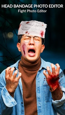 Using this fight theme filters, add face color effects into action warrior photo editor prank easily to create the scary look with this fake hand bandage photo editor application.
