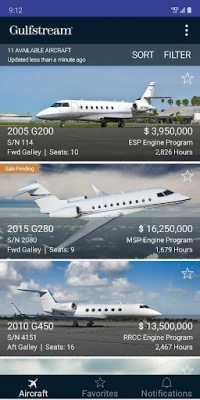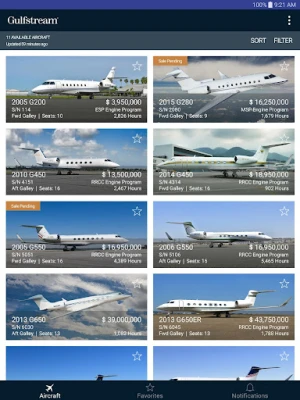 The Gulfstream Pre-Owned Aircraft app places a world-class inventory in the palm of your hand. The app provides customers with real-time inventory listings, high-quality photography, and status change notifications. This all-new version includes a brighter, refreshed design, expanded aircraft specifications and refined sorting and filtering options.
