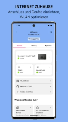 Richten Sie Ihren Telekom Router und WLAN-Verstärker mit der MeinMagenta App ein. Prüfen Sie einfach und von überall, ob mit WLAN und Router alles in Ordnung ist. Zeigen Sie verbundene Geräte an. Nutzen Sie die Einstellungen für Ihr Internet und Ihre Internet-Sicherheit. Finden Sie hilfreiche Tipps und Funktionen zur direkten Behebung von Störungen.