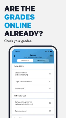 The app is your team partner on campus, which is impressive and integrates perfectly into your daily study routine. In no time at all, you have all the important information about your studies with you, wherever you are. You'll be surprised how easy it is.