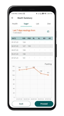 2) Health @ glance - using this feature the user can view his/her latest medical data like prescription, advice and important lab result trends
