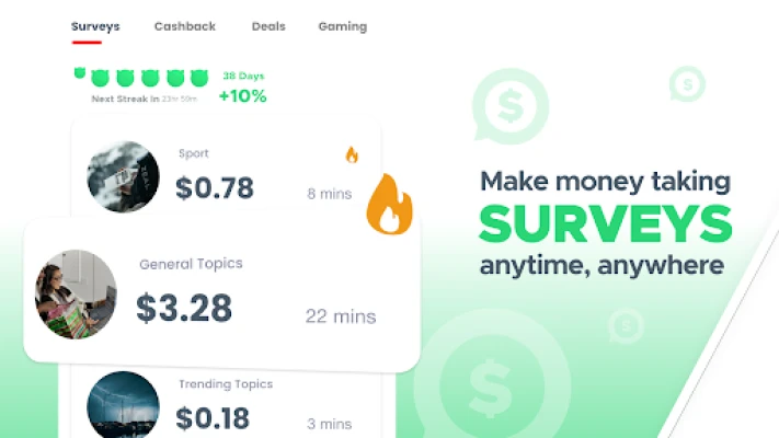 [ Bonus ] Build streaks when completing a survey at least five days in a row to make money with an extra 10% on your survey rewards.