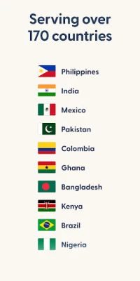 • Send a money transfer to the Philippines, India, Vietnam, México, Dominican Republic, Nigeria, Pakistan, China, Ghana, Kenya, Colombia, Brazil, Guatemala, El Salvador, Honduras, Nicaragua, Costa Rica, Panamá, Ecuador, Peru, Bangladesh, Indonesia, Korea, Nepal, Thailand and more