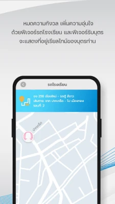 - หมดความกังวล เพิ่มความอุ่นใจ ด้วยฟีเจอร์รถโรงเรียน และฟีเจอร์รับบุตร จะแสดงที่อยู่เรียลไทม์ของบุตรท่าน