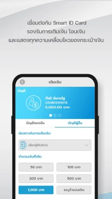 - สามารถเติมเงิน โอนเงิน และแสดงทุกความเคลื่อนไหว ของกระเป๋าเงิน ผู้ปกครองสามารถทำธุรกรรม และดูข้อมูลของบุตรได้