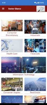 Sector Glance includes stock quotes - and 5-day charts of past performance;