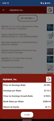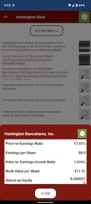 check key metrics such as Price-to-Earnings Ratio, Earnings per Share, Price-to-Earnings Growth Ratio, Book Value per Share, Return on Equity;