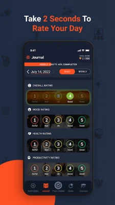 Select habits from our library based on the areas you want to improve (focus, mood, motivation...)